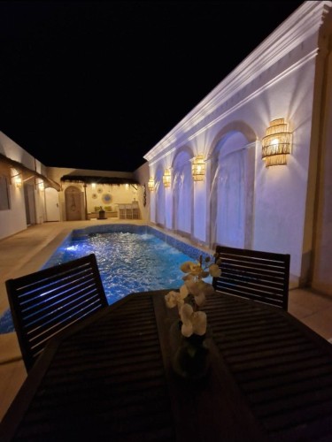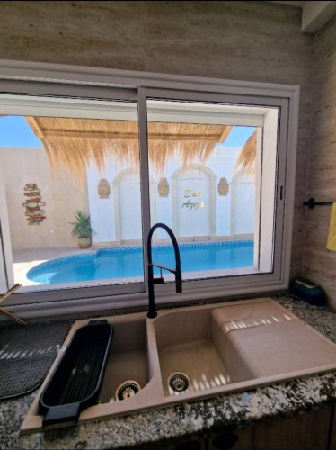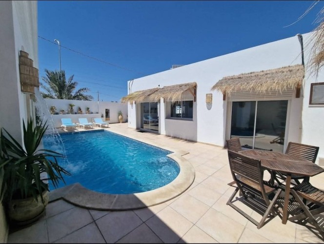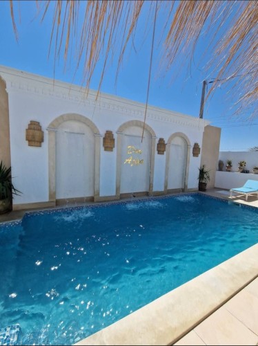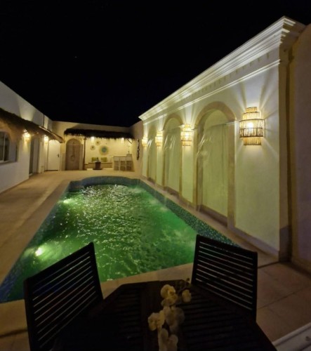 Notre magnifique villa “Dar Aziza” vous séduira par sa localisation sans vis-à-vis 🌅, située sur les Îles Kerkennah 🏝️ au large de Sfax.