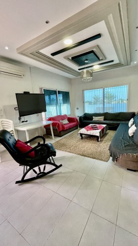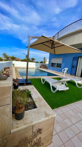 À seulement 200 mètres des plages de sable fin, cette superbe villa S+3 allie confort moderne, design épuré et emplacement privilégié.