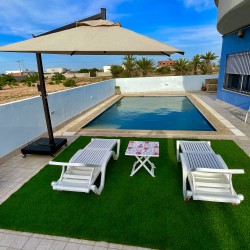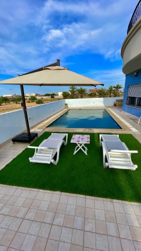 À l’extérieur, profitez d’une piscine privée au design moderne, entourée d’une terrasse aménagée idéale pour les moments de détente ou les repas en plein air.