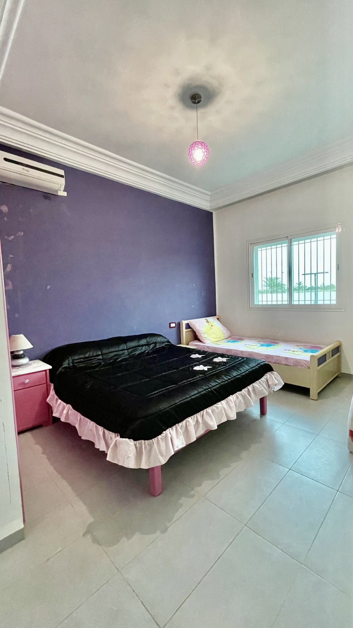 À seulement 200 mètres des plages de sable fin, cette superbe villa S+3 allie confort moderne, design épuré et emplacement privilégié.