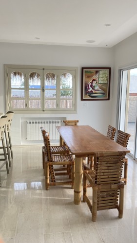 •Un salon spacieux et lumineux, ouvert sur une terrasse avec vue panoramique sur la piscine.