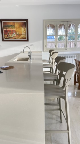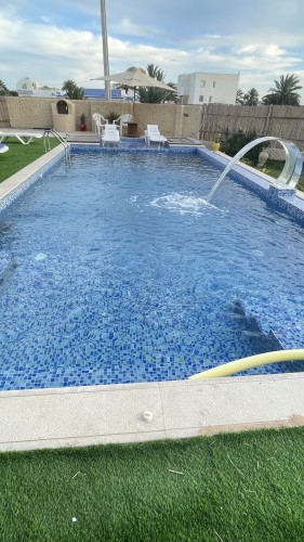Voici une suggestion de description pour une villa S+3 avec piscine à débordement près de la mer à Kerkennah :