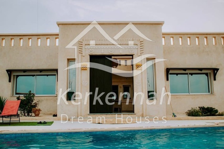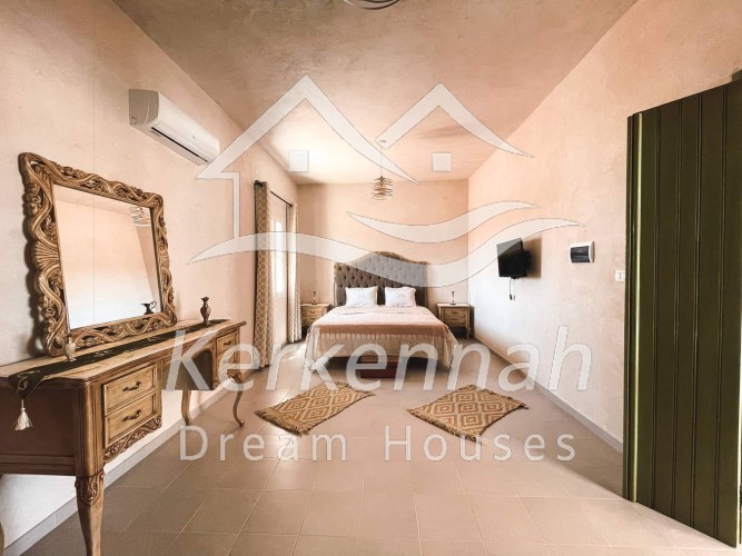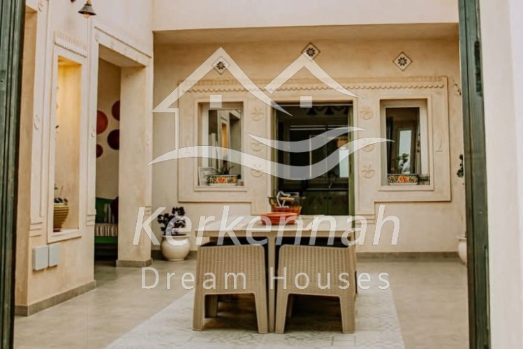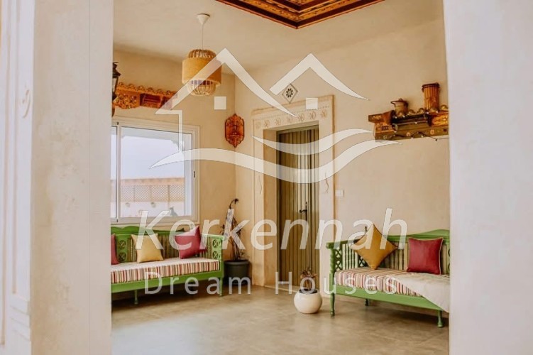Nichée dans un cadre paisible à quelques mètres de la mer, cette splendide villa marie avec élégance l’authenticité de l’architecture traditionnelle kerkenienne et le confort d’un aménagement moderne.