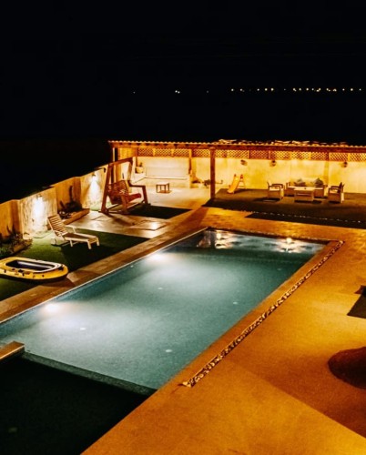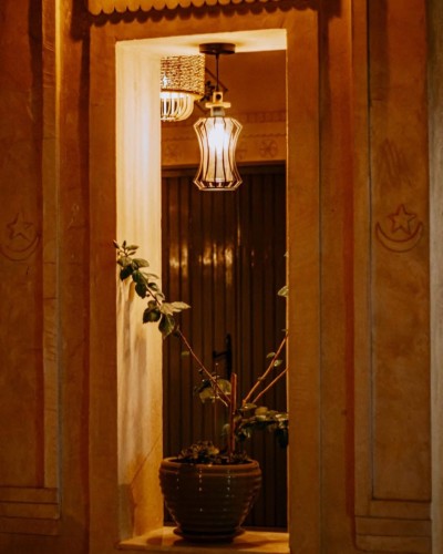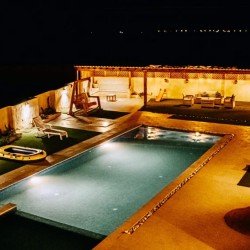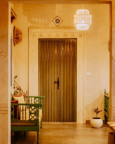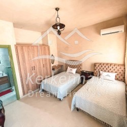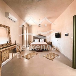 La villa se compose de quatre suites indépendantes, chacune inspirée du style traditionnel local avec voûtes, niches décoratives, et matériaux naturels tels que la pierre et le bois, tout en offrant le confort moderne : salles d’eau privatives, climatisation, et rangements intégrés.