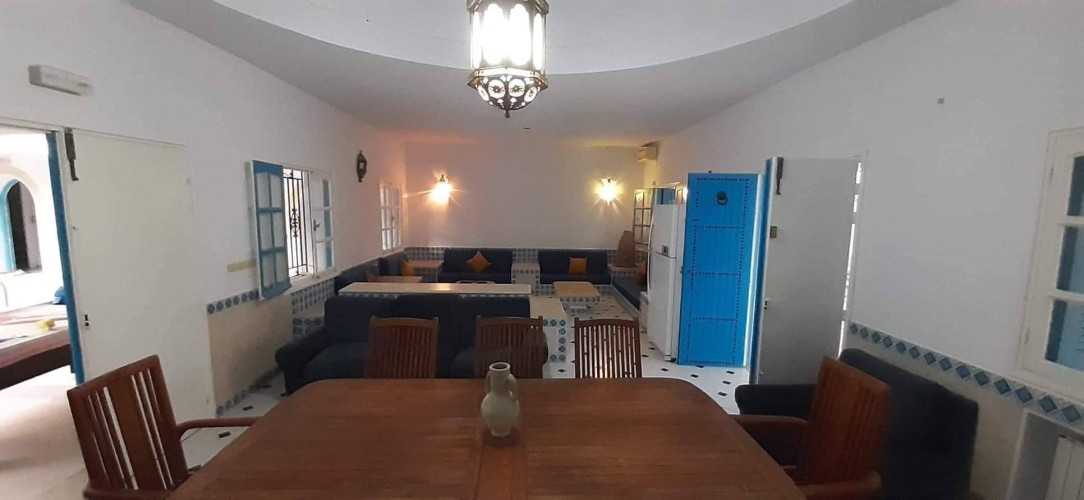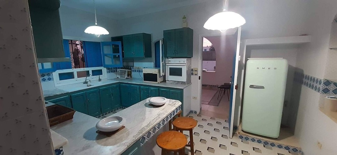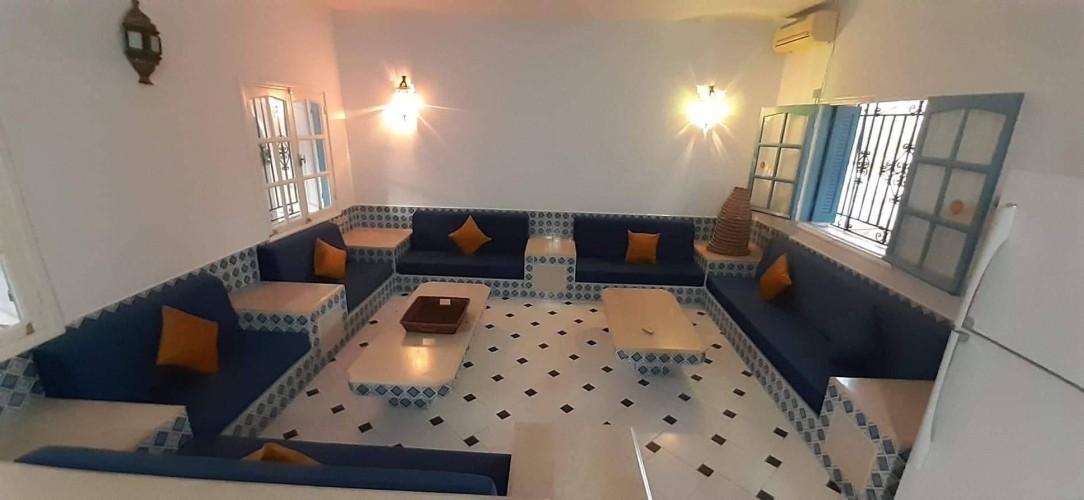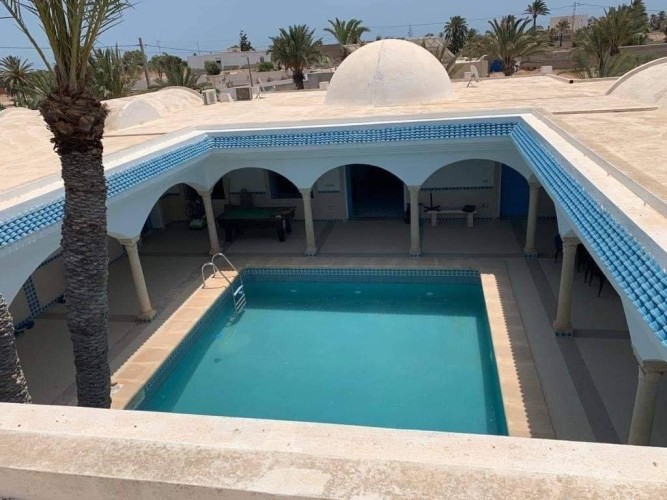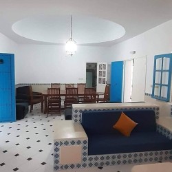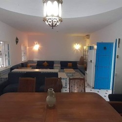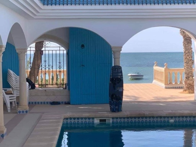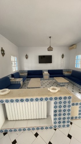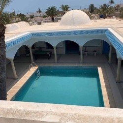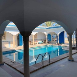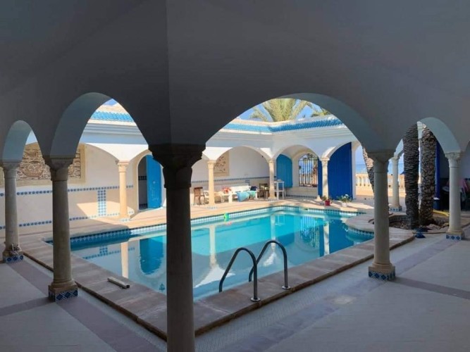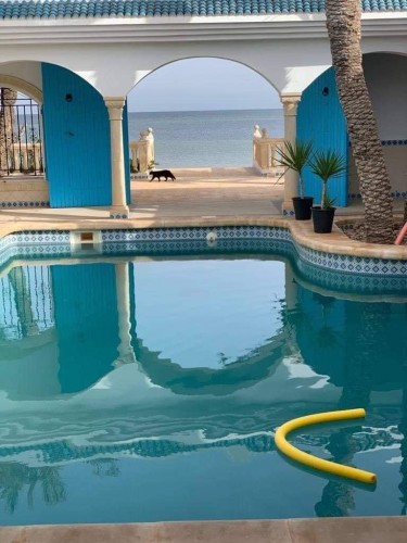 Découvrez cette splendide maison “Dar lella el Baya” située en bord de mer, offrant un cadre idyllique où le calme et la beauté naturelle se rencontrent. Conçue pour allier confort et élégance, cette propriété unique dispose de 5 chambres spacieuses réparties autour d’une superbe piscine centrale, créant une atmosphère conviviale et relaxante.