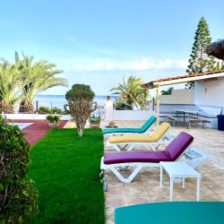 •Salon lumineux avec grandes baies vitrées donnant directement sur la mer